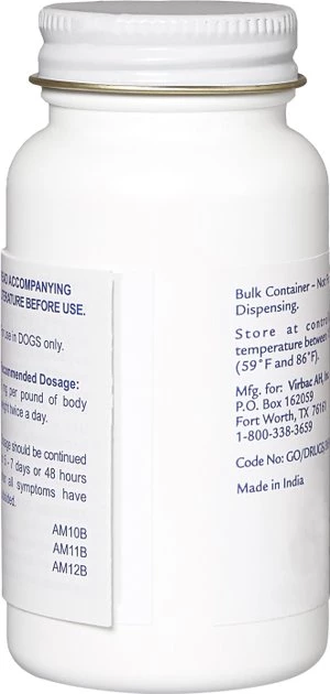 The recommended dosage is 5 mg/lb of body weight. Dosage should be continued for 5-7 days or 48 hours after all symptoms have subsided.