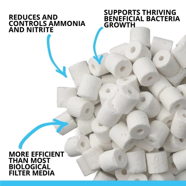 Keep your aquarium clean and healthy by growing beneficial bacteria with Fluval Biomax Bio Rings Filter Media. One of the most important ways to maintain good water quality and keep your fish thriving is seeding your aquarium with good bacteria. This bacteria breaks down harmful ammonia from fish waste and other organic matter and starts the aquarium nitrogen cycle. Fluval Biomax Bio Rings Filter Media have a complex pore system creating an optimal environment where this beneficial bacteria can thrive. These small, cylindrical filter media have more capacity than most biological filter media, allowing aquarium water to have optimal contact time for efficient biological filtration that reduces and controls ammonia.