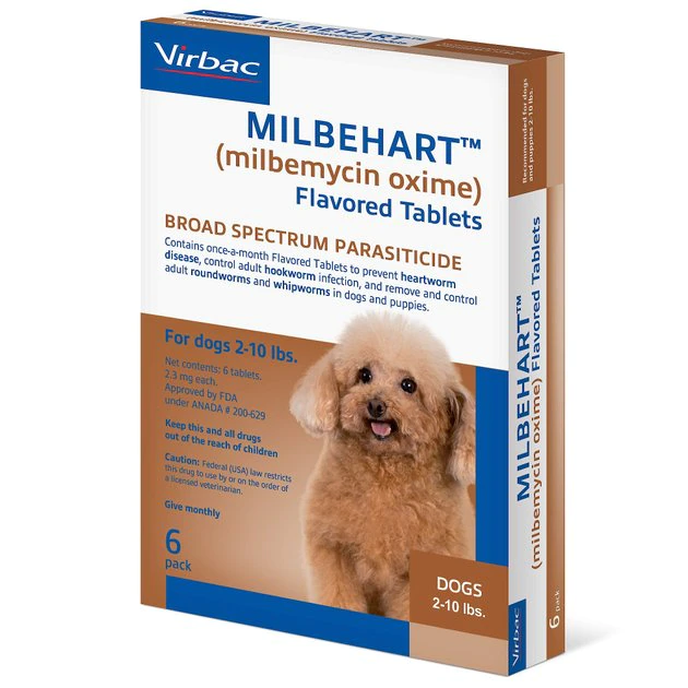 MILBEHART Flavored Tablets are indicated for use in the prevention of heartworm disease caused by Dirofilaria immitis, the control of adult Ancylostoma caninum (hookworm), and the removal and control of adult Toxocara canis and Toxascaris leonina (roundworms) and Trichuris vulpis (whipworm) infections in dogs and in puppies four weeks of age or greater and two pounds body weight or greater.