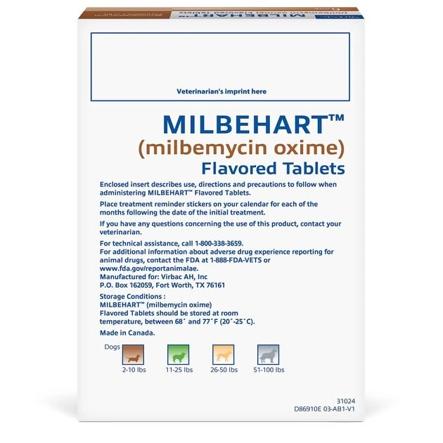 Storage conditions:MILBEHART Flavored Tablets should be stored at room temperature, between 68 and 77F (20-25C).