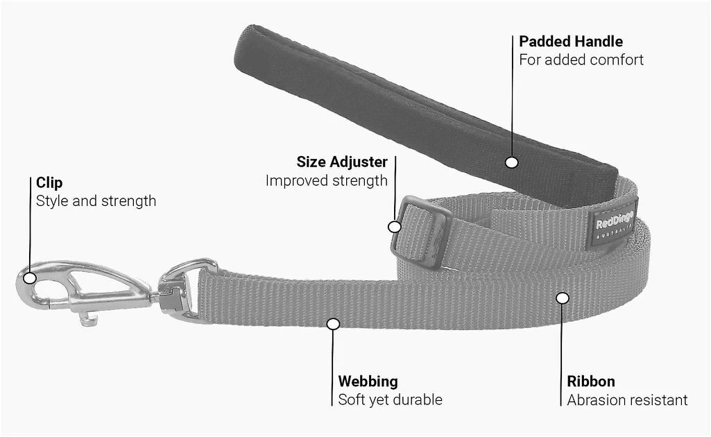 Go everywhere in style with the Red Dingo Classic Dog Lead. Designed to be ultra-durable and wearable, this lead is as functional as it’s comfortable. Made with premium nylon webbing, abrasion resistant ribbon, and sewn seams for extra durability, it’s perfect for everyday use. It features a soft padded handle for comfort, interchangeable lead clips and adjustable lengths to meet your pup’s needs. To accommodate all of your needs, from exercising to training, you can adjust the length from 3.5 to 6 feet on demand. Plus, it’s available in different sizes and colors so you can find the right one for your pal.