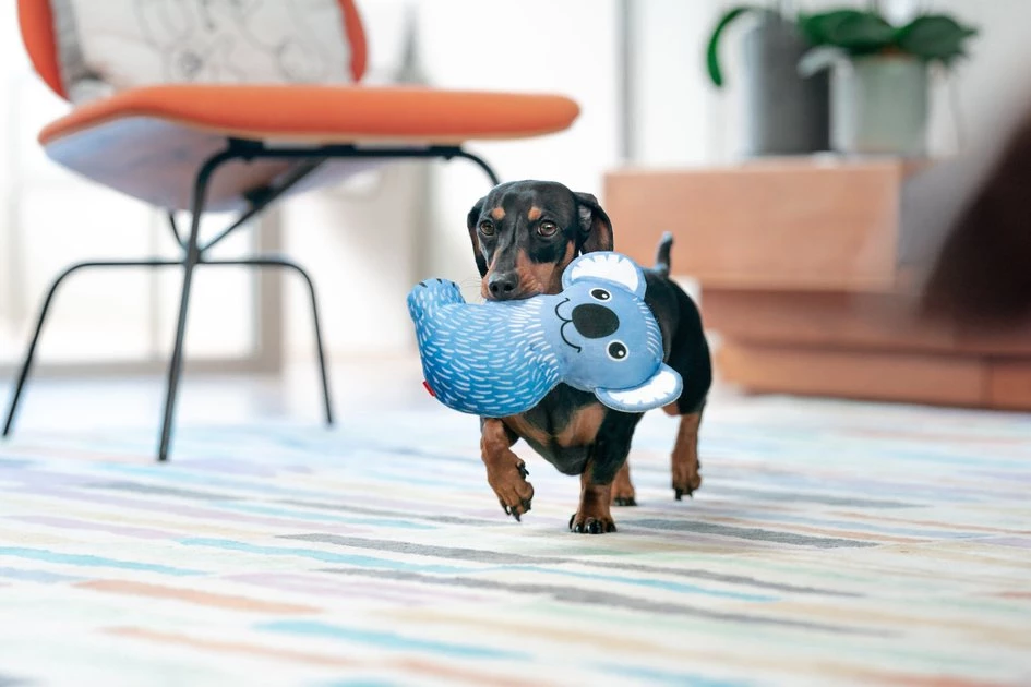 Your furry friend is going to have a tail-wagging good time playing with the Red Dingo DURABLES Kim the Koala Squeaky Soft Dog Toy. Paw-fect for interactive play like a game of fetch or tug-o-war, this soft, yet durable toy is designed with unique fabric and contains an internal squeaker for added excitement! This cute soft character also makes a grr-eat snuggle buddy and can be enjoyed by dogs of all sizes.