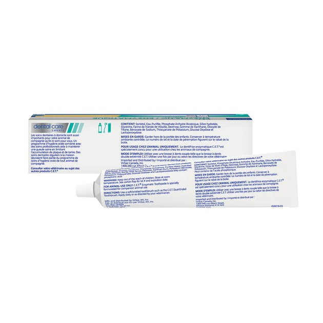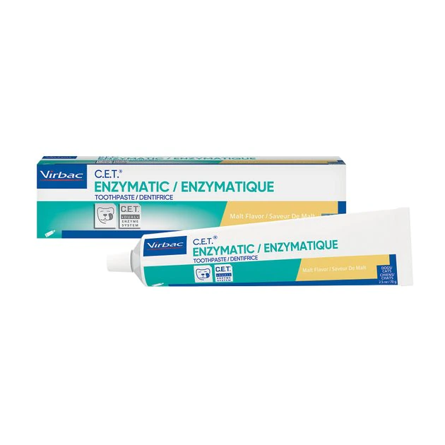 C.E.T. Toothpaste is specially formulated to be safe, effective and appealing to your dog or cat. Contains the C.E.T. Dual Enzyme system to inhibit the formation of plaque. Formulated specially for dogs and cats, they contain no foaming agents and are meant to be swallowed. Flavors are well accepted by pets and make brushing easy.
